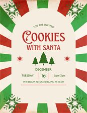 Please join us for Cookies with Santa at Medilodge of Grand Blanc from 5pm to 7pm. We look forward to seeing the smiles.